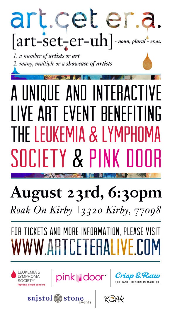 This Thursday see artists create a piece in front of your eyes while you imbibe cocktails and wine, while being charitable! Be at Artcetera IV at Roak, 6.30pm to help me overcome performance anxiety. Artcetera benefits Lymphoma and Leukemia research. Get your tickets at http://artceteralive.com or go to facebook for more info. THIS Thursday 23rd, 6.30pm, Roak on Kirby (the club with the pool inside).