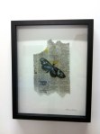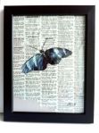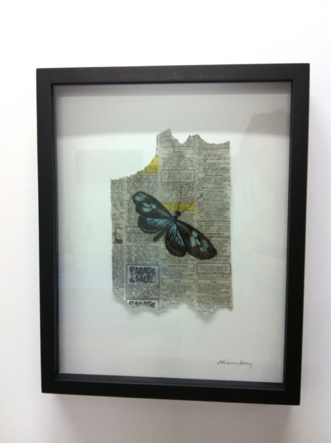 Butterfly Exotica, 9×12″ framed size, painting on newspaper, pin, acid-free white card